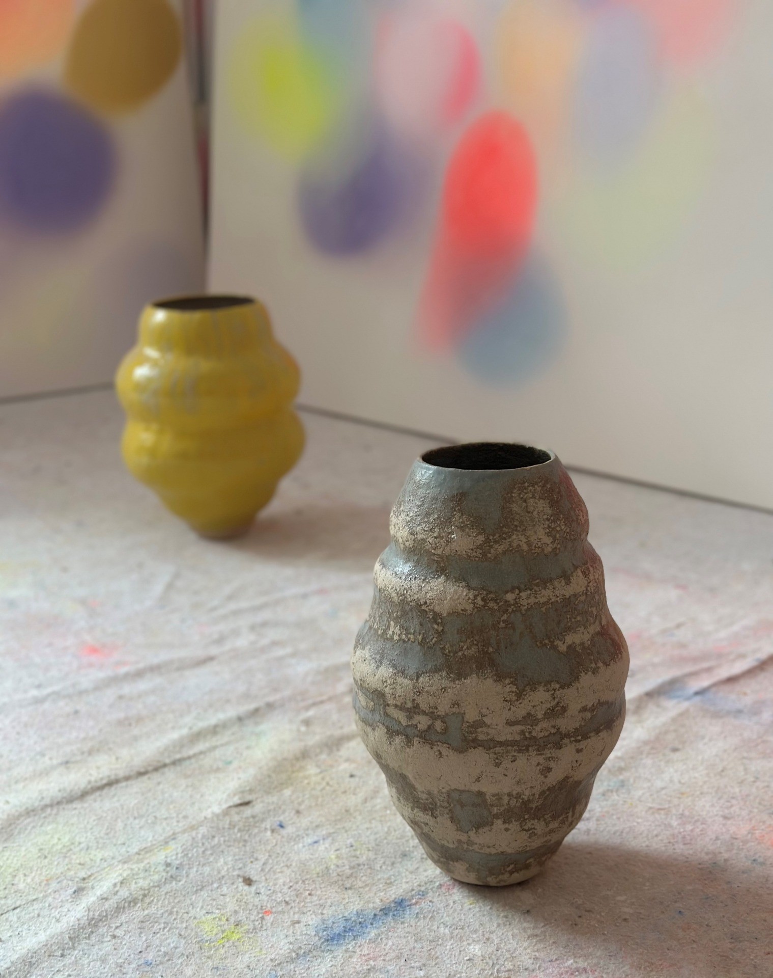 Es entstehen neben der Malerei der „Arising Colors“ auch keramische Gefäßobjekte.