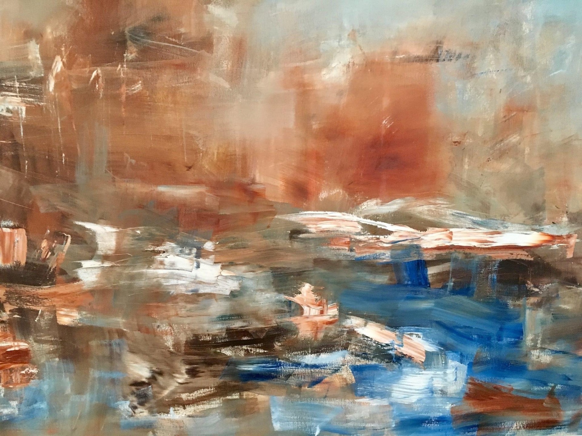 In neuen abstrakten Bilderserien verweist Klaudia Stöckl auf organische Strukturen und Formen, die sowohl an das Land als auch an das Meer erinnern. Sie stellt diese Elemente kompakten strukturierteren Formen wie kräftigen Streifen und geschichteten sich überlappenden Flächen gegenüber, die manchmal auch transparent erscheinen. Die neuen Gemälde erzeugen dabei eine innere Spannung und einen dynamischen Dialog.